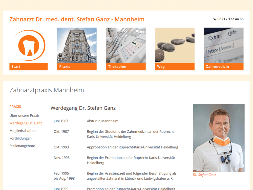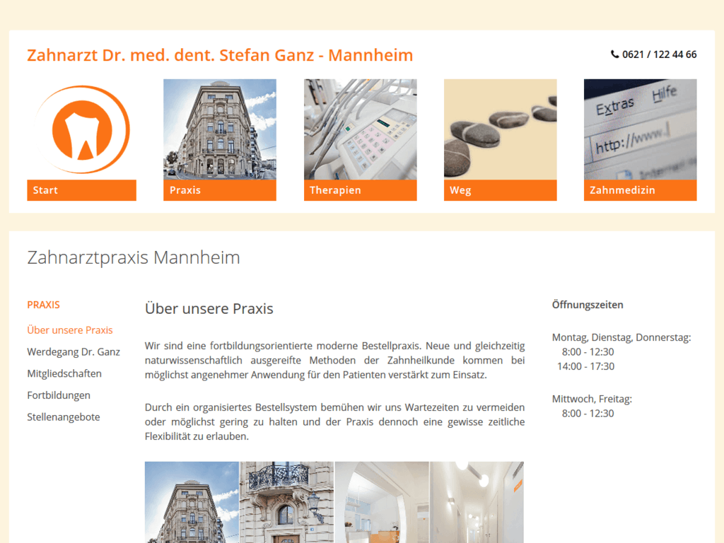 Für Dr. Ganz, Zahnarzt Mannheim, realisierten wir bereits in 2007 seinen ersten Internet Auftritt.