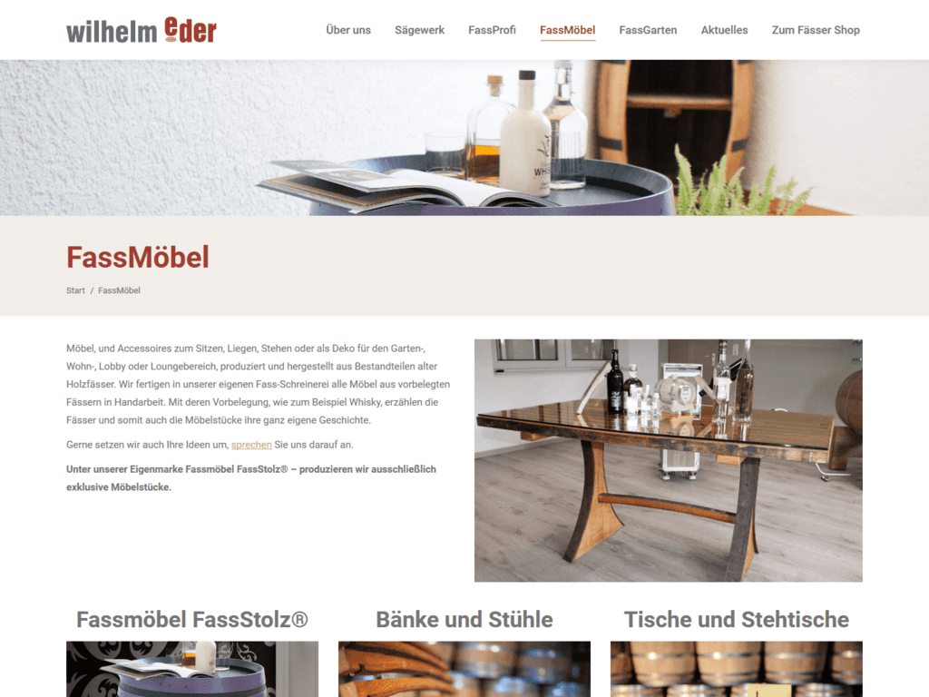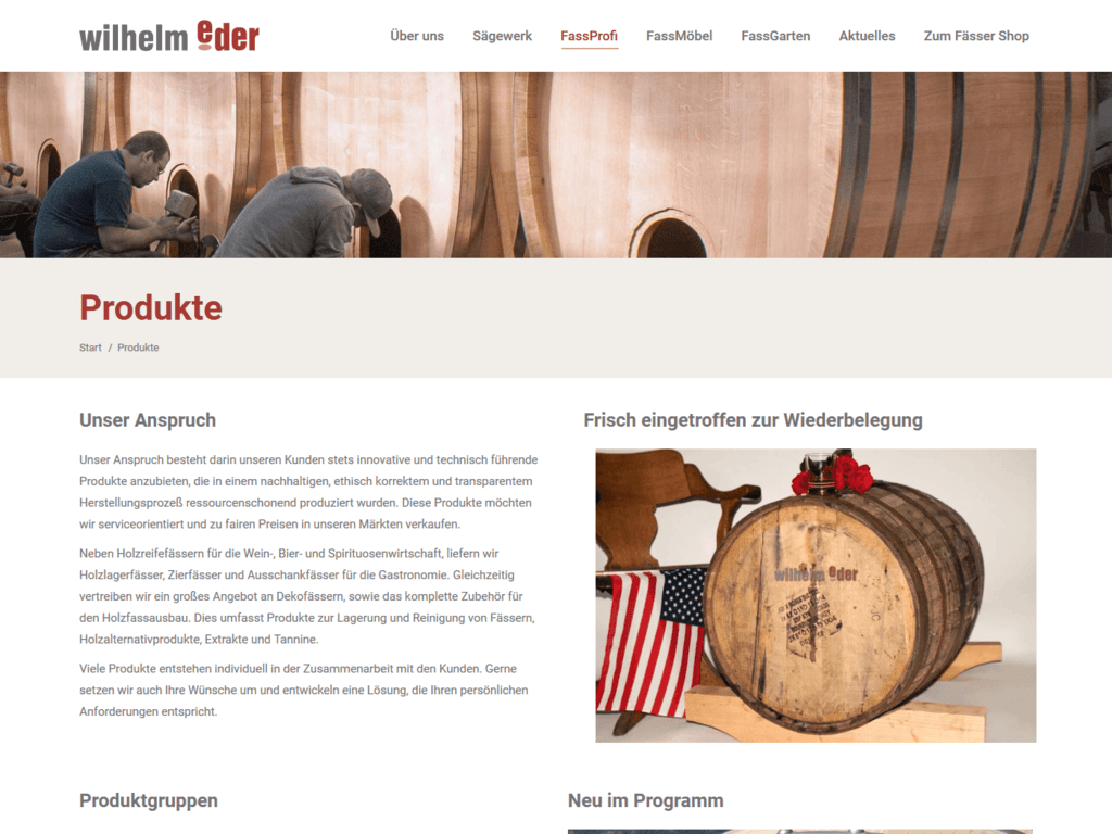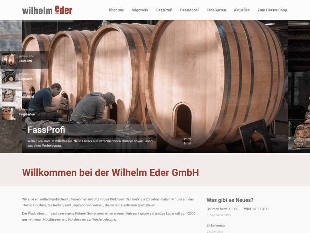 Nachdem wir erfolgreich den Faesser-Shop der Wilhelm Eder GmbH, Bad Dürkheim, in die Betreuung übernommen hatten, kam die Geschäftsführung auch mit dem Wunsch auf uns zu, die Unternehmenswebsite zu betreuen und zu relaunchen.