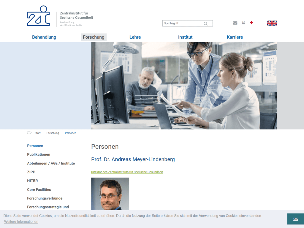 Das Zentralinstitut für Seelische Gesundheit in Mannheim war im Jahre 2003 einer unserer ersten Kunden mit einem TYPO3 Projekt. Seit dem haben wir den Internet Auftritt kontinuierlich ausgebaut und in den Jahren 2008 sowie 2012 komplett relauncht.